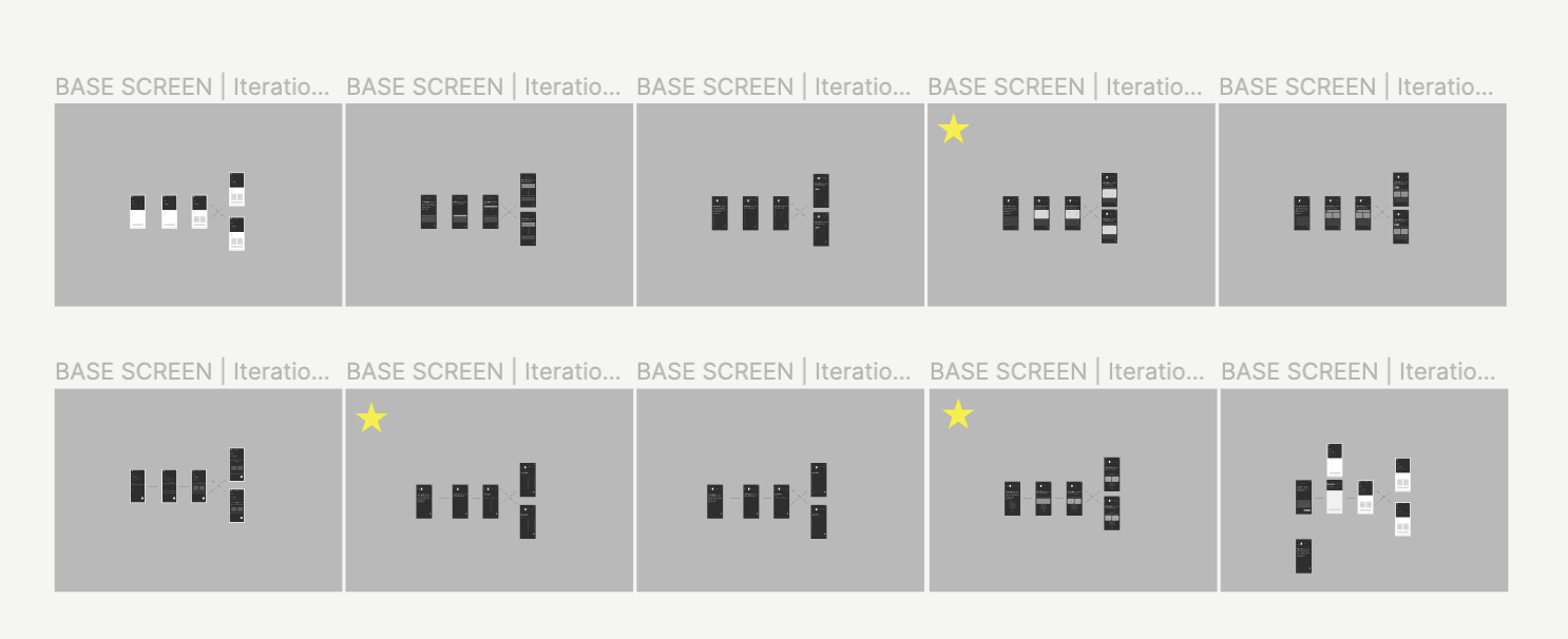 As I progressed to mid-fidelity designs, I crafted a series of 10 iterations for client evaluation and approval. Advancing with three preferred designs, we will refine and finalize designs A/B/C for full development and prototyping.