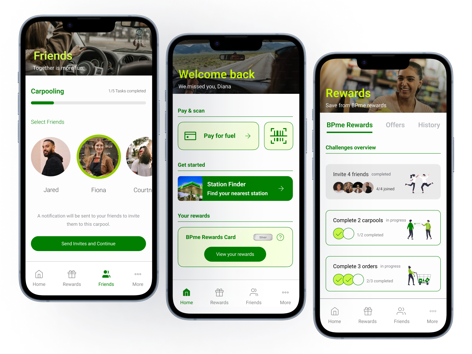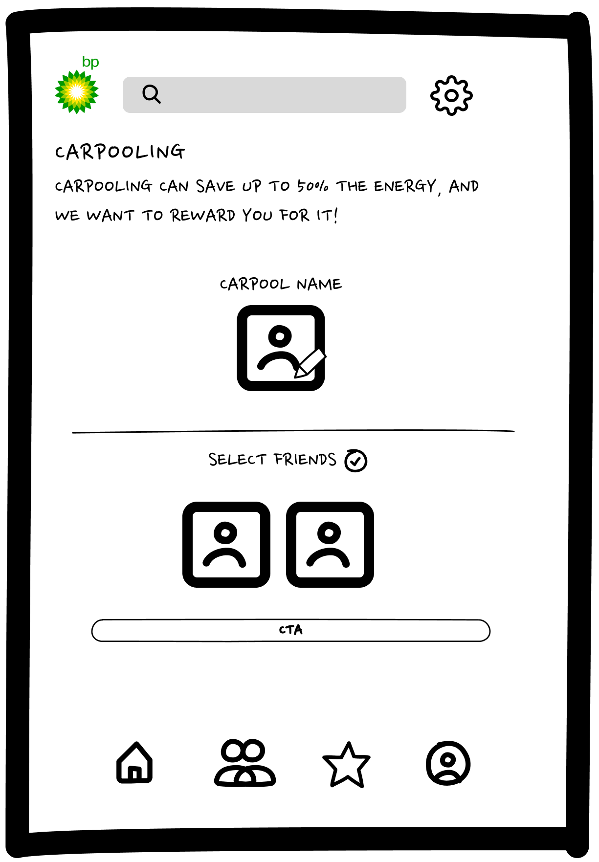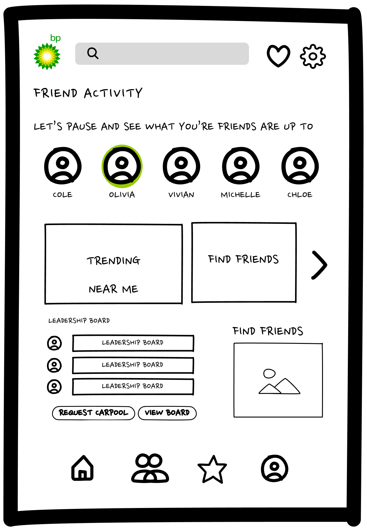 Users are encouraged to carpool to BP and really anywhere! Because of BP’s commitment to sustainability, this solution focuses on rewarding people for carpooling while making an interactive and fun experience while they are actively together and ultimately ends with leading people into the store.