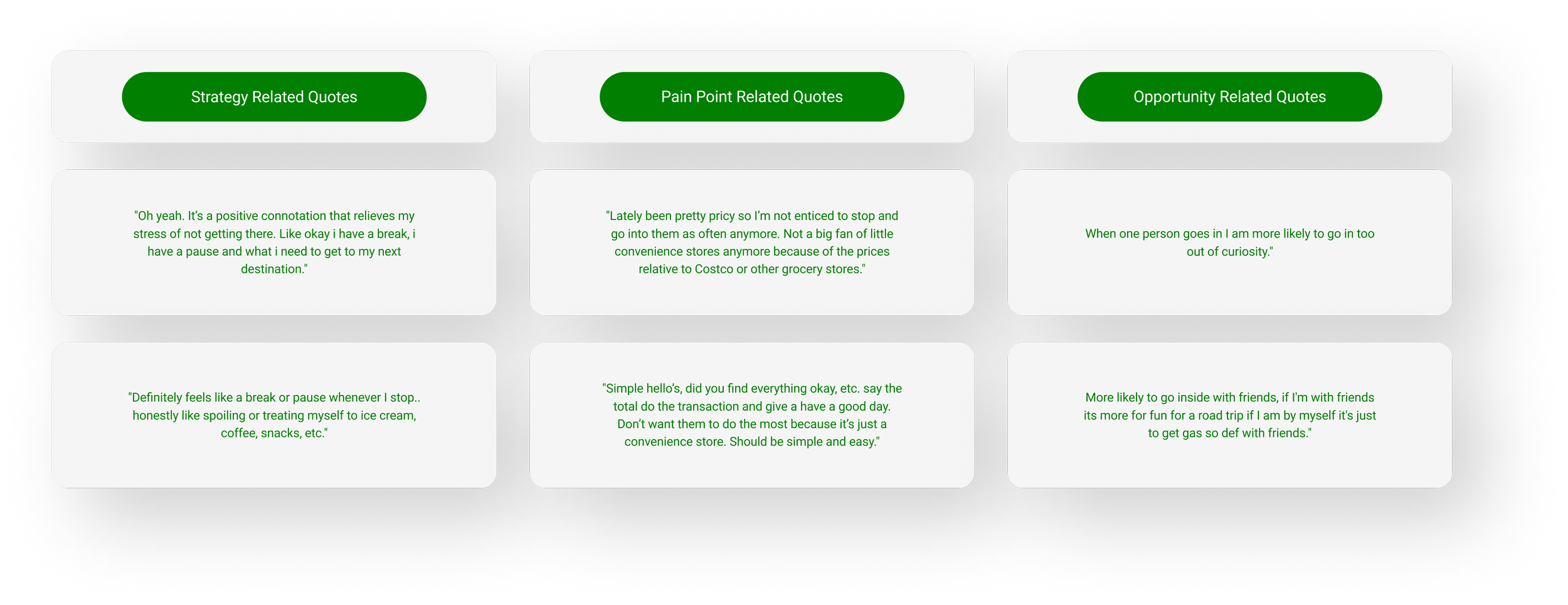 Interviews were conducted on both Gen-Z and Millenial individuals. Interviews spanned about 20 minutes and interviewees were asked a series of questions related to convienence stores, BP specific, and the UX of loyalty programs they enjoy.