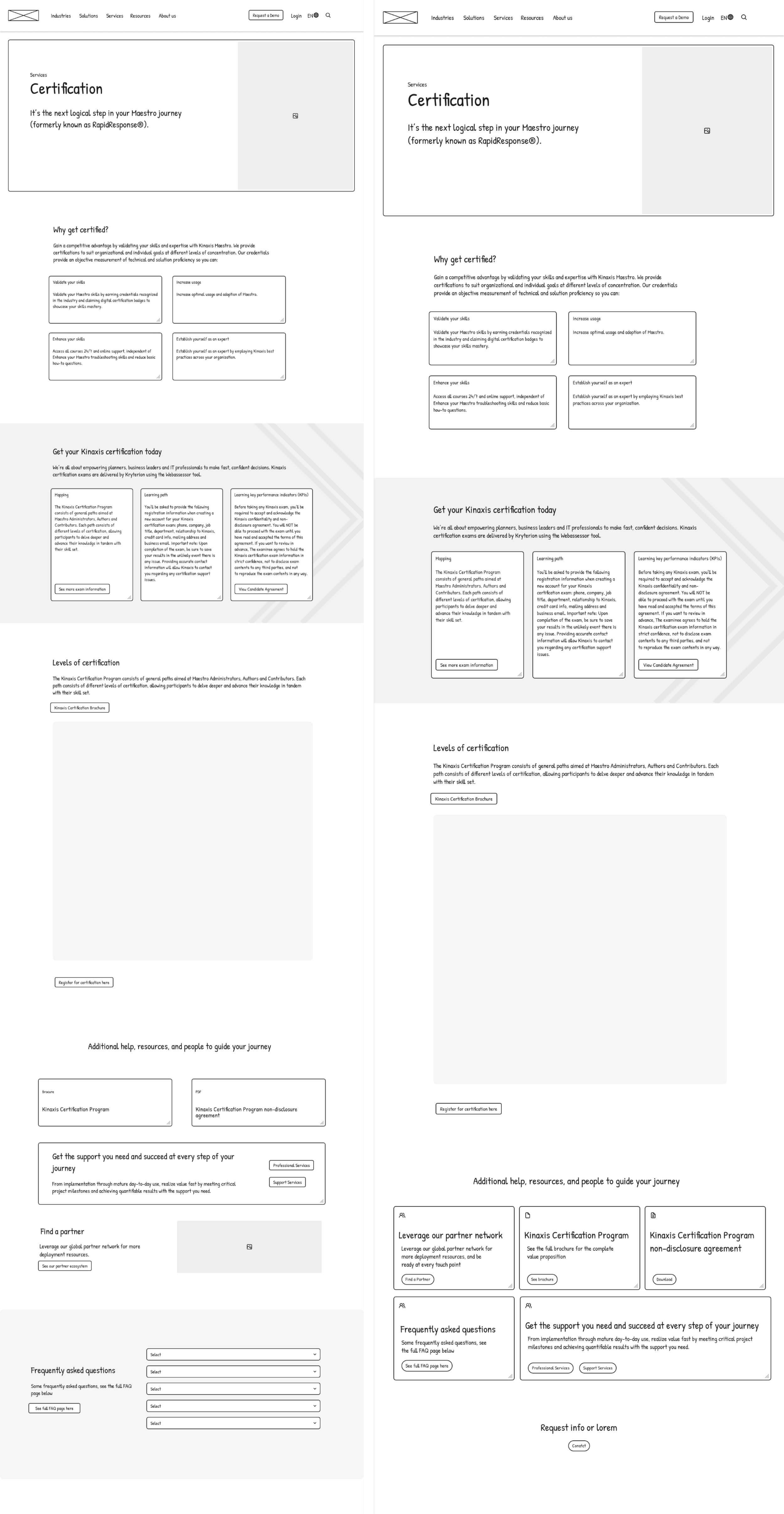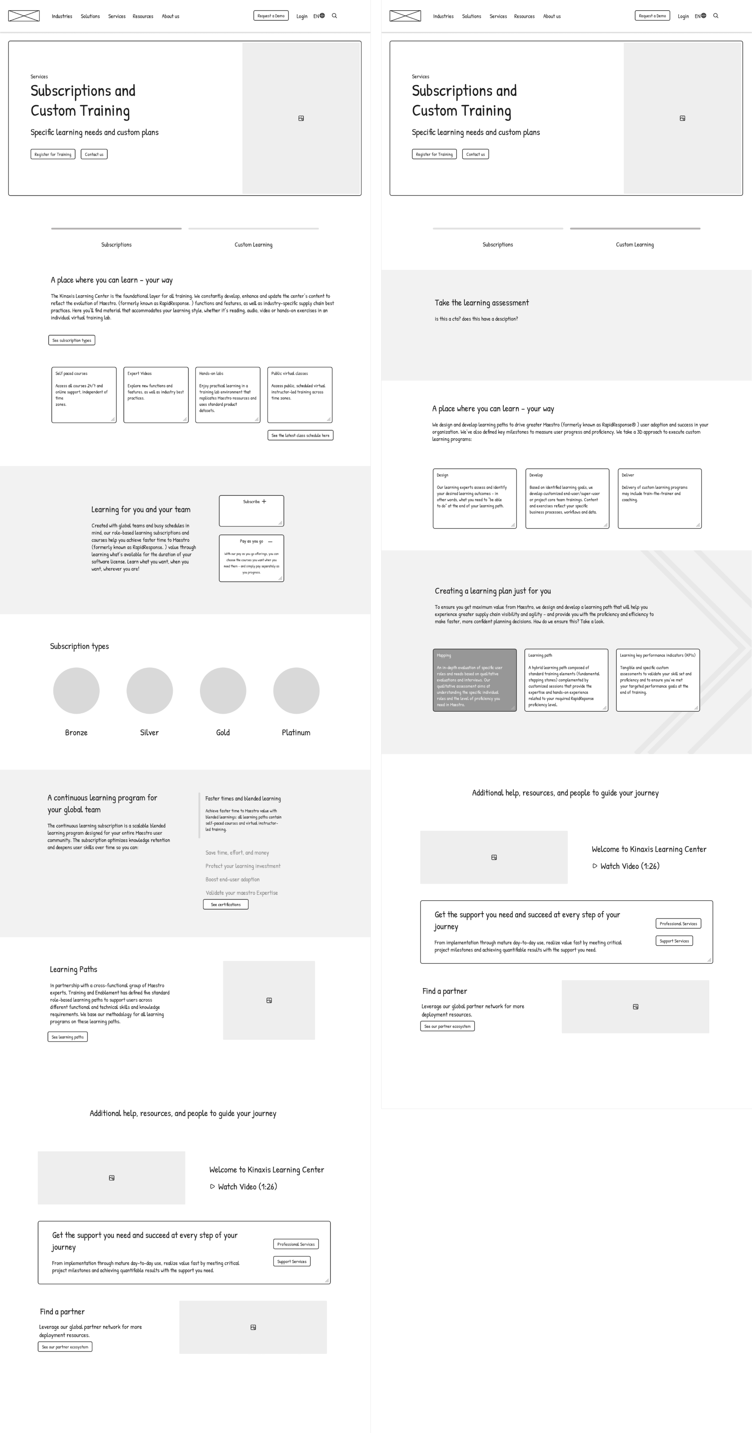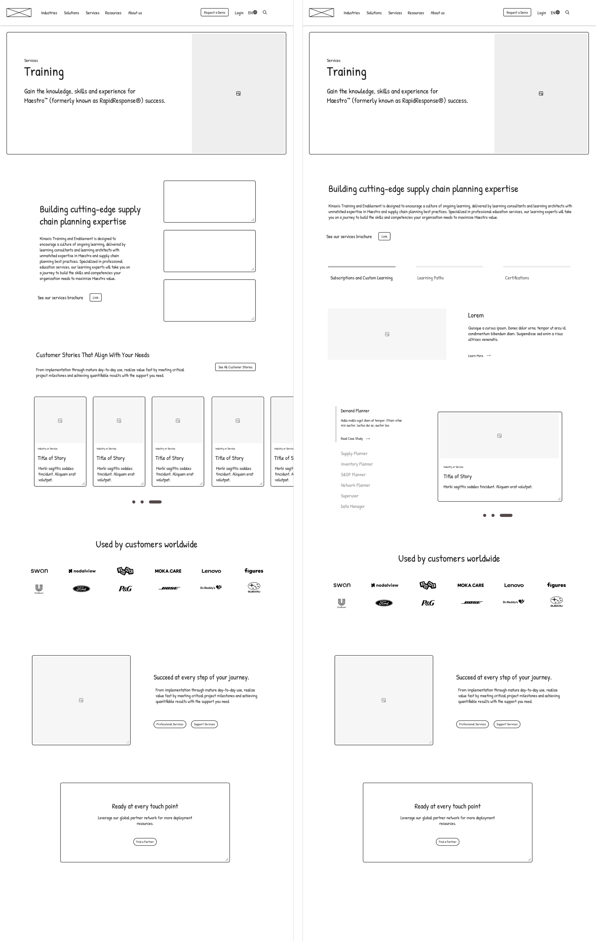 The following images depict the current state of the website pages slated for redesign. As a contractor within the Training and Enablement team at Kinaxis, my scope of responsibility encompassed these five key pages within the broader Kinaxis digital ecosystem. Based off of the current state audit, I identified areas of opportunity for the interface. This project was not limited to keeping page titles and information consistency if it did not support the initiative. From a current state audit, I identified key areas of opportunity.
